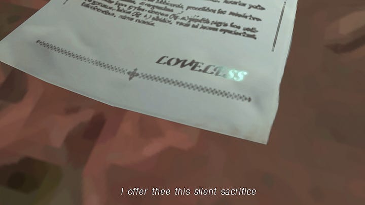 We also know that the famous play LOVELESS consists of five acts, with the fifth act being lost to time, which is why Genesis writes his own interpretation of it.