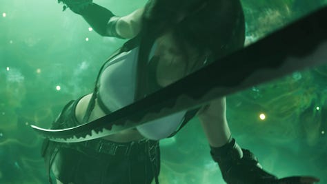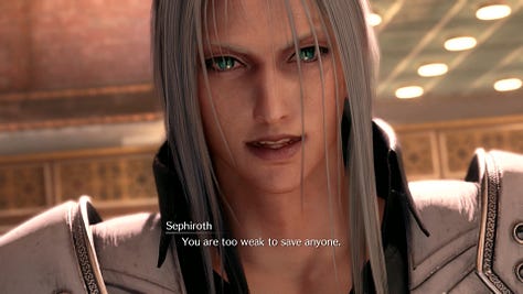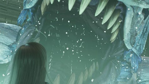 Which is actually the case in Final Fantasy VII Rebirth where he tries to stab Tifa while inside the baby Weapon’s green Magnus Materia core after falling into the destroyed Mako reactor in Gongaga and subsequently swallowed by said baby Weapon. And who is responsible for pushing Tifa into the Mako pool in the first place? Cloud under Sephiroth’s influence. Two predictions, two hits.