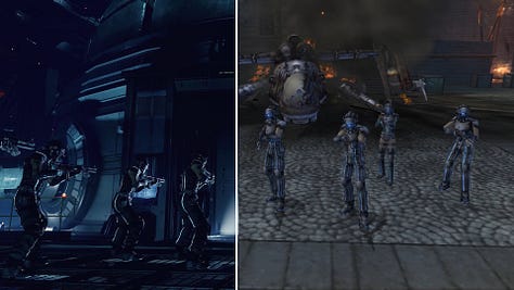 I know you probably don’t want to hear it,4 but the lore established in Dirge of Cerberus is very much ingrained into Remake’s DNA, just like Advent Children, Before Crisis, and Crisis Core. Chapter 13 made a start with having our characters explore a part of Deepground and Episode INTERmission shoves it directly into our faces with identical Deepground soldiers and especially Weiss and Nero’s appearances.