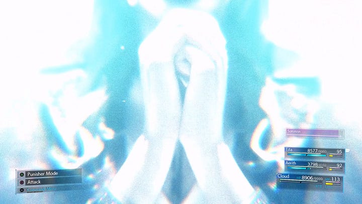 We’ll go more into the details in a future video but the gist of it is that the current Lifestream is basically almost or even fully corrupted which is why Aerith won’t be able to call it for help, even though she’s in it. Yes, Sephiroth still needs her to die, as described earlier. Her death is a big motivator for Cloud to stop Sephiroth at all costs, which leads to the showdown in the Whirlwind Maze. Additionally, Aerith is a foil to Sephiroth’s manipulations of Cloud which are necessary to initiate Meteor Fall.