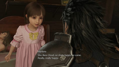 Cloud’s knowledge is unreliable and spotty, and the extent of Marlene’s knowledge is unknown. Final Fantasy VII Rebirth at least reveals that her version in the Terrier world knows about Aerith’s fate in the Forgotten Capital, that a scary man with long grey hair will kill her, and that Cloud tries to save her but is too late.