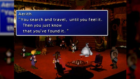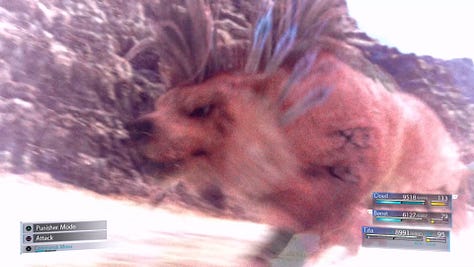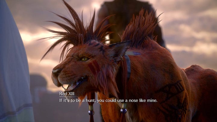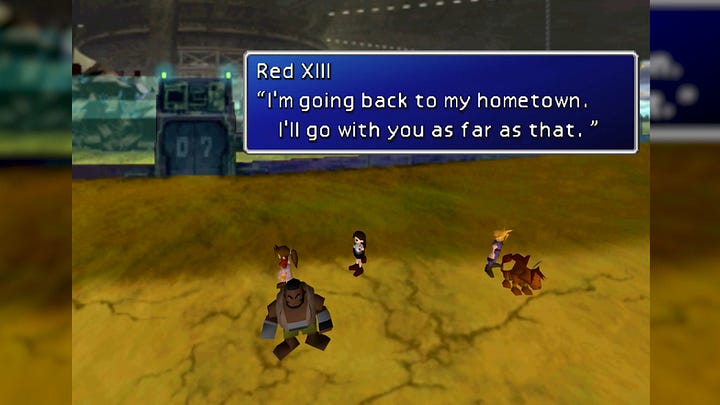 We’ll go more deeply into this first point in a future video about the ending, but what happens to Aerith’s and Red XIII’s additional memory after defying destiny? Aerith reacts to Tifa’s questions in a way which suggests that she has no idea what comes next. On the other hand, Red XIII lends them his nose for the hunt instead of proclaiming that he’ll only accompany them until they reach Cosmo Canyon.
