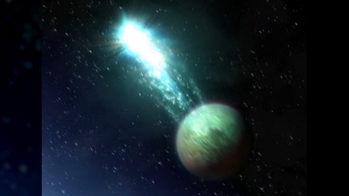 The yellow stars could also symbolize where that blue creature originally hails from. I think the Jenova vibes are overwhelming at this point.