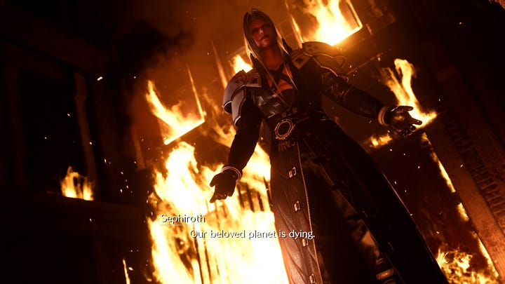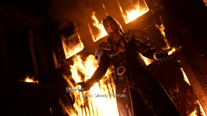Cloud's memory glitches and Sephiroth's appearances are more numerous and contain new elements regarding Remake's mysteries. And it all leads to Sephiroth's new endgame, his plan to remake the future.