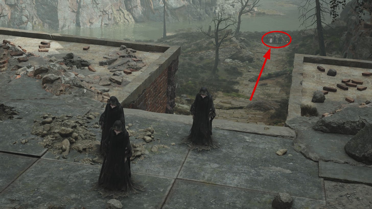 As detailed above, we only hear about that black-cloaked man but never see him. Rebirth treats this part differently in that neither Chocobo Bill nor anybody else at the farm has seen any of the black-robed individuals. Instead, we meet one of them personally on our way through the marshes, apathetically standing on one of the many landmasses. Naturally, Cloud sees him as Sephiroth, as he did with numbers 2 and 49 in Midgar. Contrary to the others, who only see a regular black-robed man. This is the first of several instances where Cloud mistakes one of Hojo’s Reunion theory subjects for his nemesis Sephiroth.10