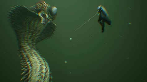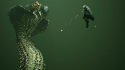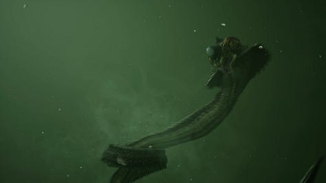 Right after defeating the boss monster, it squirms and flees underwater. Threat neutralized. Or so it seems.