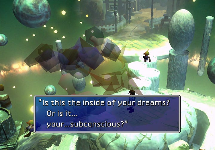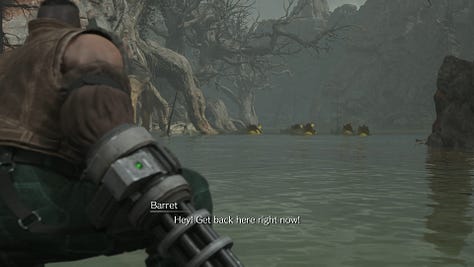 And all of this combined is why I think Cloud emerged from the swamp on his own with his sword in hand before collapsing to the ground. No Sephiroth anywhere besides in Cloud’s head.