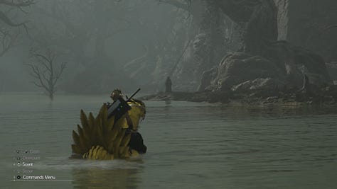 But the average player generally doesn’t know how to achieve any of this, so a Chocobo is the way to go. For the sake of completion, let’s go through the steps required to cross the swamp properly as intended.