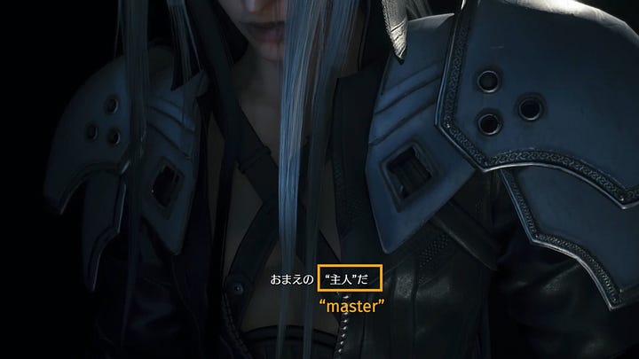 Sephiroth say “I am… your everything” in English and “I am… your master“ in Japanese.