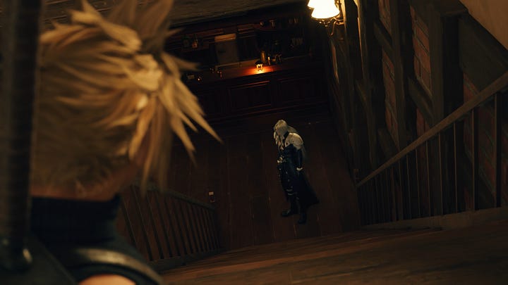 Cloud is not interested in their sympathy and wants to know about Sephiroth. Nobody answers but Aerith, though only with a pensive shake of her head.