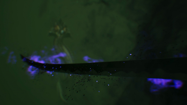 What follows next seems more straight-forward again. That previously mentioned concentration of black and purple smoke and particles further converges and eventually forms a familiar silhouette and face: Sephiroth.