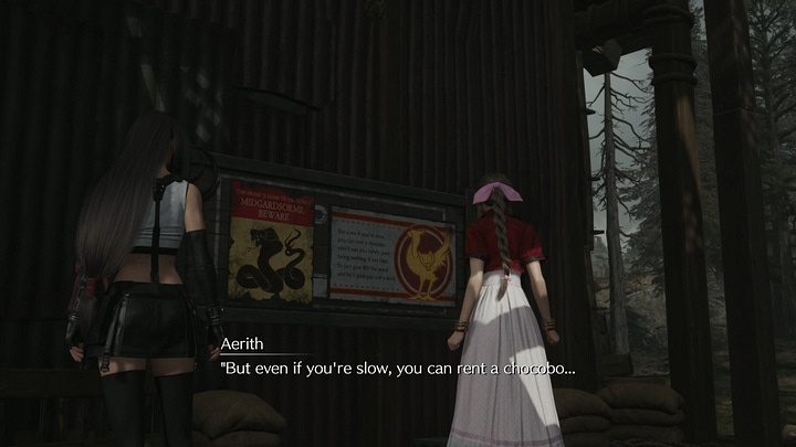 In Rebirth, however, before you can even enter the Chocobo farm, you first have to walk south and visit the abandoned dock where you learn about the discontinued Republican ferry system and the biggest threat in the swamp, the Midgardsormr. This then points you towards the Chocobo Farm where you can rent a bird to cross the swamp safely.