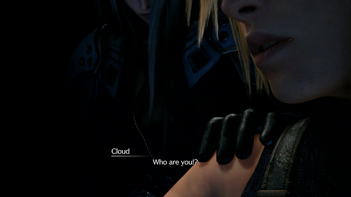 In any case, this final point is another giveaway that things aren’t as they seem. When Cloud sees the impaled Midgardsormr, he mentions Sephiroth’s strength. While doing so, only the lower half of his face is shown. He’s clearly hiding some inner emotional distress or turmoil, or at least the truth, just as Aerith did in chapter 8 in Remake22 when Cloud mentions that he feels Sephiroth is still around somehow. Though contrary to Aerith, he’s not consciously aware of the truth.