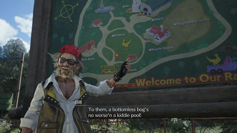 If you walk up to Chocobo Bill who’s dealing with a broken-down vehicle at an intersection somewhat close to the Chocobo Farm, he’ll tell you that the abandoned dock is the best place to hunker down in peace.