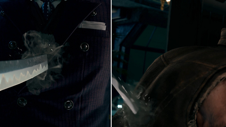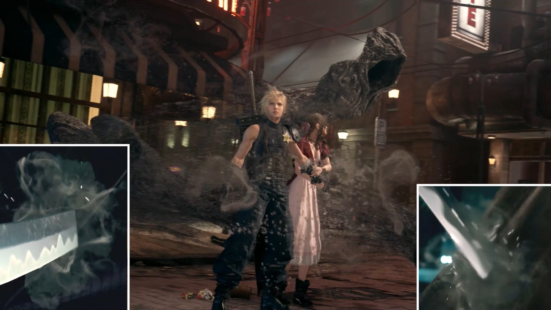 There’s also another element most likely caused by a lower rating and that’s the grey effect emanating from president Shinra’s and Barret’s stab wounds. However, if it were just for the rating, they could have merely left out the blood, like when Sephiroth prepares himself an Aerith Kebab in the original. So why use this strange effect?