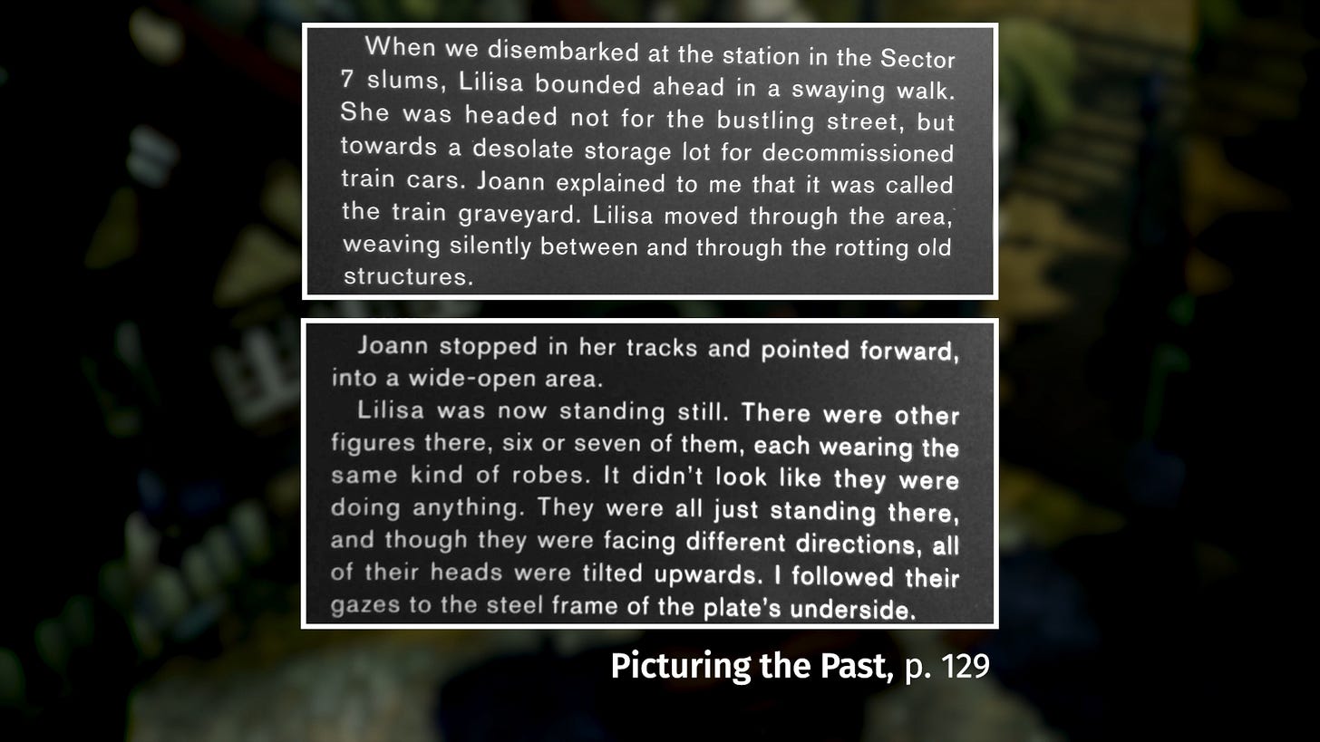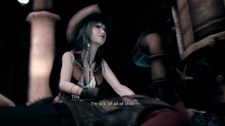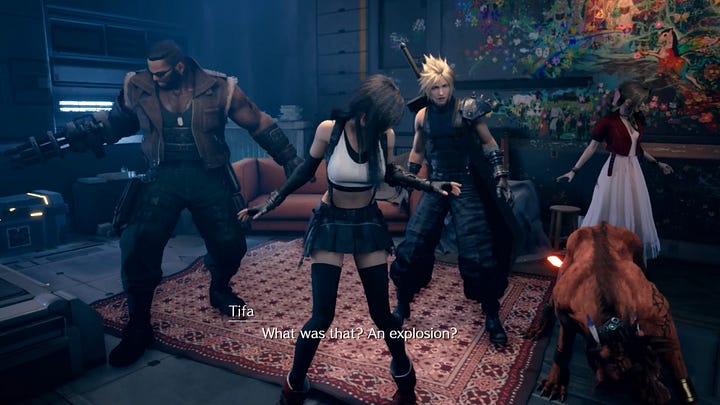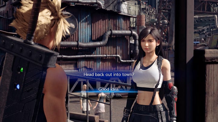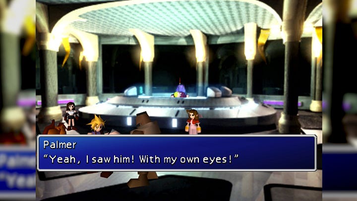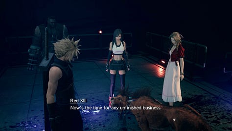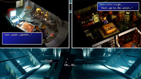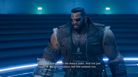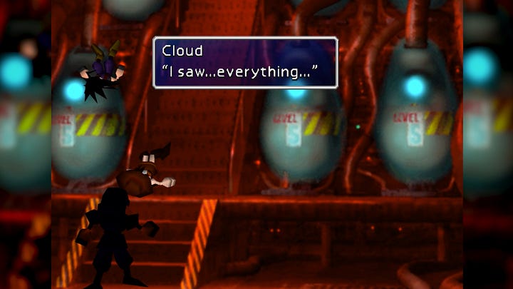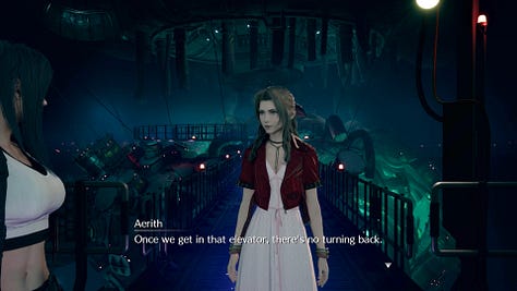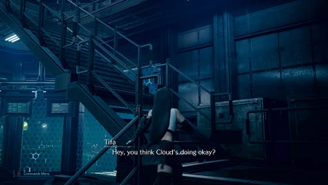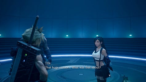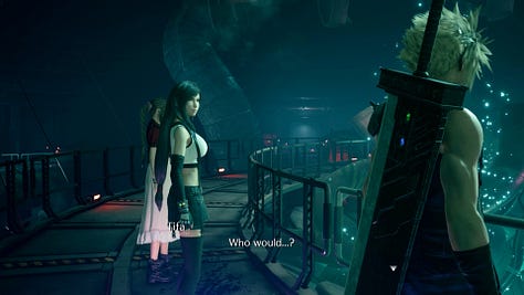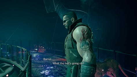 It’s also very strange that nobody in our party mentions Sephiroth or Jenova in any way after the destruction of the bridge. As if they lost their memory of what happened. Only Tifa asks Aerith about Cloud’s mental state, but neither of them mentions Sephiroth.