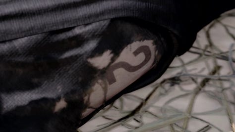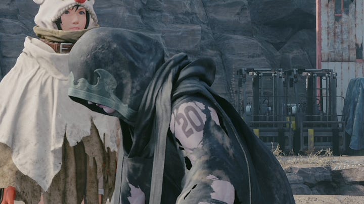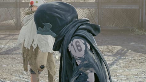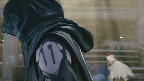 It’s notable that number 2 and Cloud share a brief glance as the scene slows down to show the face underneath the black hood.