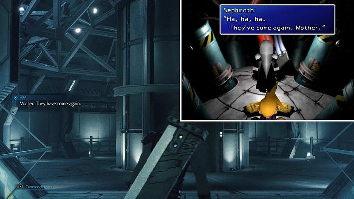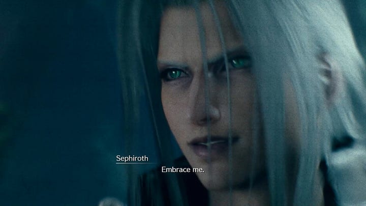 Cloud's memory glitches and Sephiroth's appearances are more numerous and contain new elements regarding Remake's mysteries. And it all leads to Sephiroth's new endgame, his plan to remake the future.