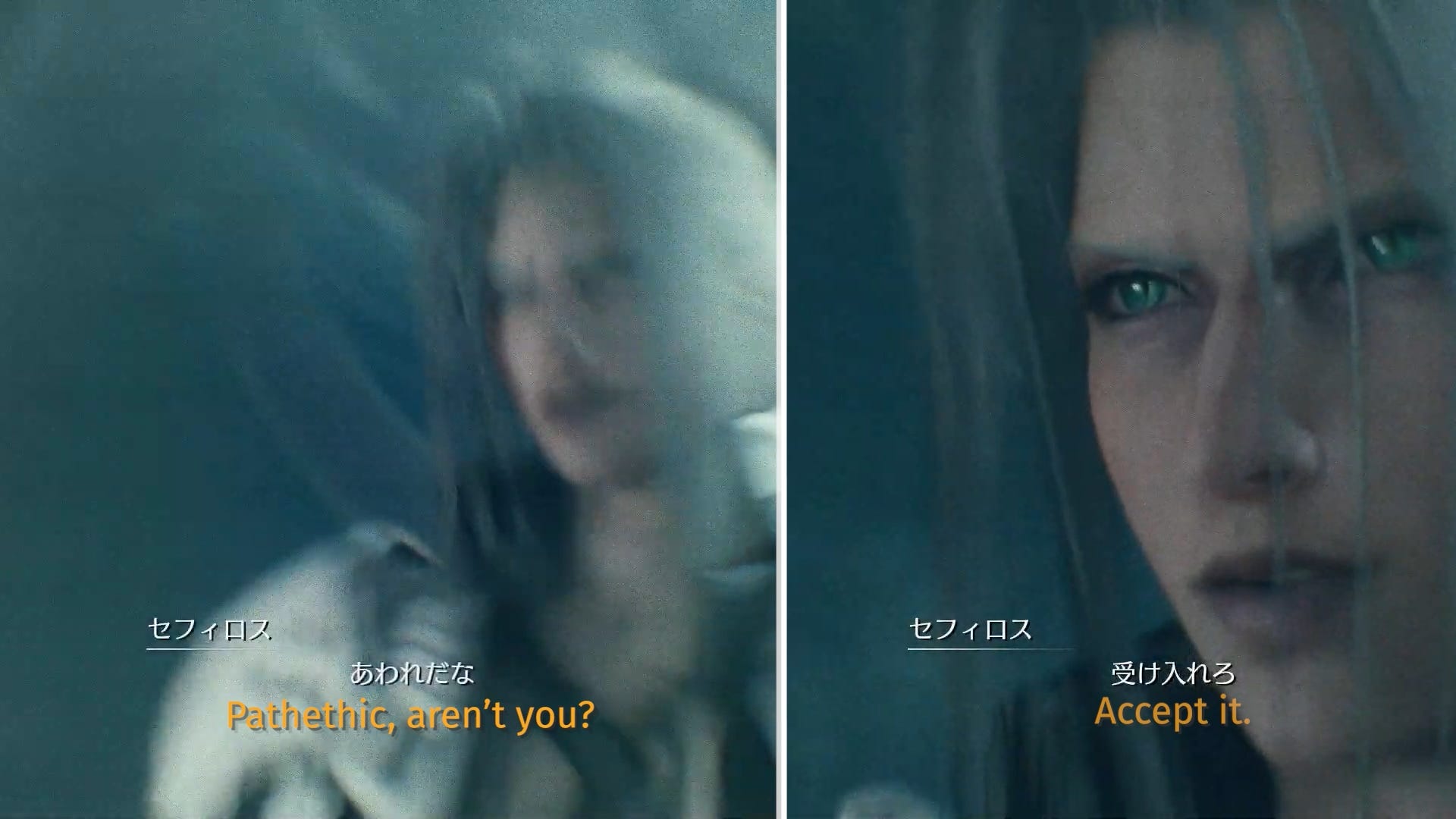 It’s interesting that this glitch happens just after Cloud calls out Sephiroth’s name. Maybe it jogged some more of Sephiroth’s memories of Cloud? He does crack a smile, after all.