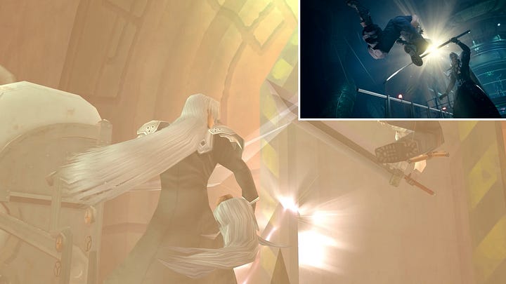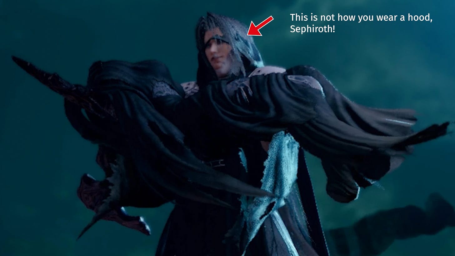 The following observation might just be a mistake, but for a few frames before one of the Whispers covers the view, we can see both Sephiroth’s and number 2’s models overlapping.