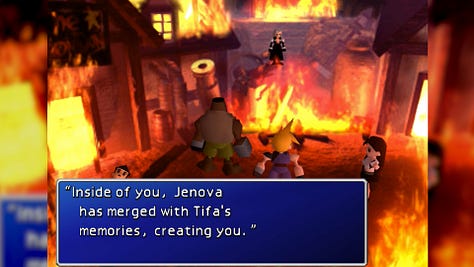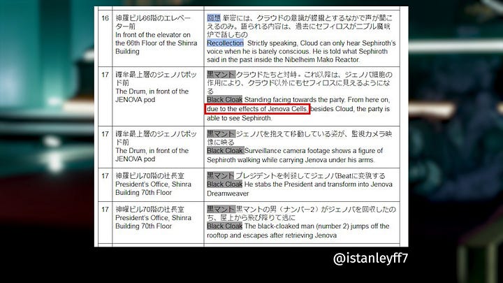 Increasing Cloud’s active hatred and visual memories of Sephiroth would strengthen the connection between Jenova, number 2, and Marco and thus allow original Sephiroth to project his own image onto the latter two, which is what happens in the very next scene.