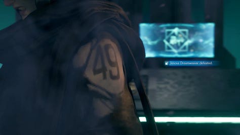 After the battle, it’s revealed that we’ve been fighting number 49 all along. Number 49, who had taken on the looks of Sephiroth thanks to the effects of Jenova cells and Sephiroth’s influence.