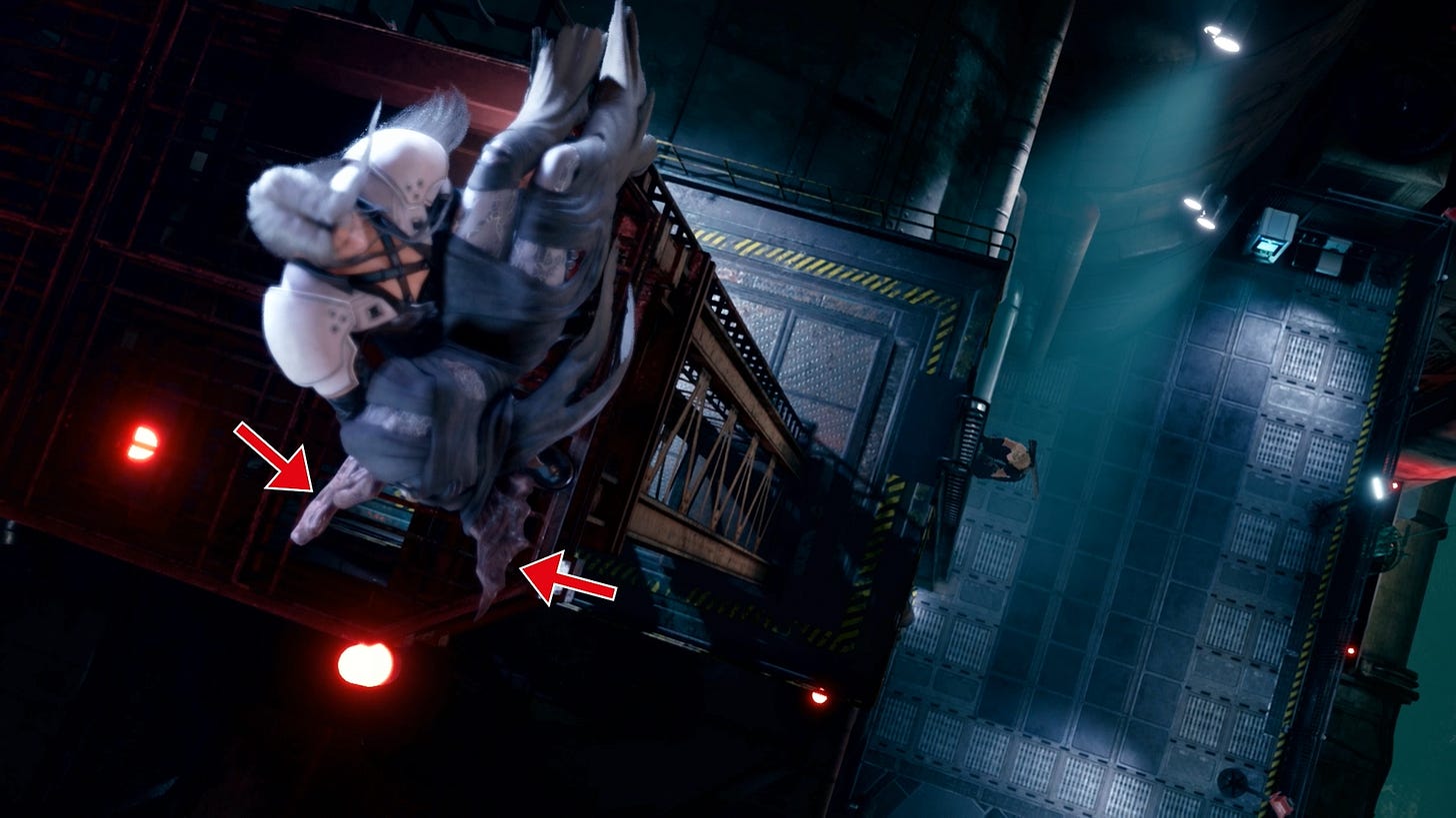 Without being hindered by Cloud, number 2 lets himself fall off the building, accompanied by three Whispers, presumably the same ones who directed Cloud towards Number 2, and now ensure a safe escape for Jenova.