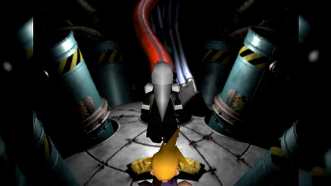 Despite Cloud’s differences to those Sephiroth clones, he still succumbs to the call of the Reunion as the party approaches Jenova’s tank in the drum. It seems that this corridor and the cylindrical elevator reminds Cloud of going after Sephiroth in the Nibelheim reactor and seeing Jenova with his own eyes, hence the Jenova flashes.