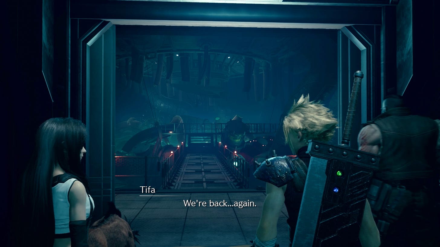 While we direct Cloud towards the elevator, we hear some of Sephiroth’s words he utters when facing his “mother” in the Nibelheim reactor with Cloud reacting audibly to those memories.